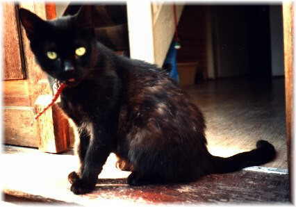 | Das war Mitsou. Mitsou wurde stolze 17 - fast 18 Jahre alt. Seit dem 06.Mai 2002 schläft auch sie am Ufer an der Regenbogenbrücke. Sie war eine sehr neugierige, selbständige und sehr an ihrer natürlichen Umgebung interessierte Katze. Am liebsten war Mitsou draußen. Sie kannte sich sehr gut in der Umgebung aus. Wenn wir spazieren gingen, folgte sie uns manchmal wie ein kleiner Hund durchs halbe Dorf. Von ihren männlichen Artgenossen wurde sie häufig zum Jagdobjekt gemacht. Kampfspuren an ihrem Ohr zeugten davon. Hier in Rosenthal genoss sie sichtlich ihre Freiheit, die nur im Winter etwas eingeschränkter war. Ihr ungemein lautes Schreien ("miauen" konnte man dazu nicht sagen - es klang immer wie "e-au") brachte ihr bei uns den Spitznamen "E-Au" ein. Überhaupt war Mitsou ein Original, das mit "Babajaga", "nordhessische Wasser-Igel-Eulenkatze", und auch "Verkehrsberuhigungskatze" wohl die meisten Spitznamen besaß. Letzteren Namen bekam sie für ihre unglaubliche Fähigkeit, kurz vor Autos auf die Straße zu laufen und diese zur Bremsung zu veranlassen. Dabei wurde ihr niemals ein Härchen gekrümmt. Wir vermissen Mitsou sehr... |