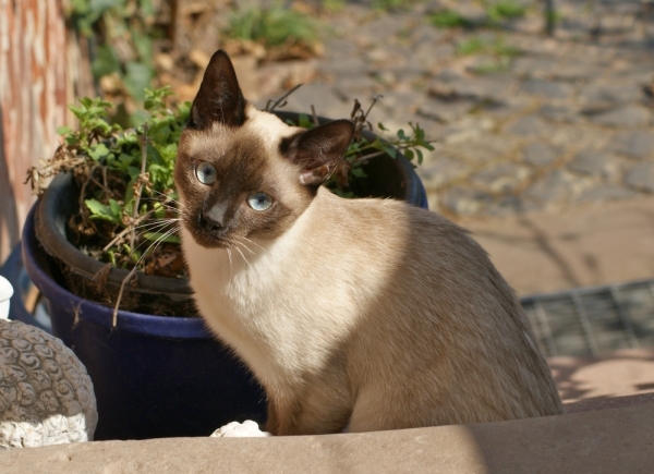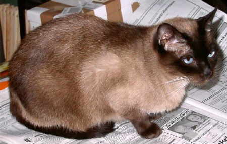 | Das war Sunday. Seit 22. Juni '99 lebte der damals 3-jährige Siam-Kater bei uns. Sunday brauchte "seine" Menschen und "sein" Zuhause. Deshalb trat er in den ersten Tagen bei uns vor lauter Angst 'die Flucht nach vorn' an und versetzte uns fauchend und kreischend in Angst und Schrecken. Er wurde aber in sehr kurzer Zeit der liebenswerteste und ruhigste in der Meute. Besondere Markenzeichen von Sunday waren ungeheure Sturheit und Eigensinnigkeit. Das verlieh ihm direkt schon aristokratische Züge und machte ihn uns auf seine Weise enorm sympathisch. Trotz seines "ersten" Lebens als Einzelgänger war Sunday ungeheuer freundlich zu den anderen Katzen - insbesondere kleinere und schwächere werden von ihm sofort 'adoptiert'. Shivas Kinder betreute er als wären es seine eigenen, und häufig fand man die kleine Familie (Shiva, Sunday und die Kleinen) zu einem Knäuel gerollt im extra seinetwegen angeschafften Katzenkorb der Größe XL. Angst vor Fremden hatte er nicht, und tägliche Streicheleinheiten sowie Zusatznahrung für "ehemals stillende Adoptivonkel" forderte er sehr höflich, aber bestimmt bei uns ein. Sunday war immer unser Krankenpfleger für kleine und schwache Tiere. Ende August 2008 wurde er plötzlich immer dünner und magerte enorm ab. Alle tierärztlichen Versuche brachten keine Besserung. Er litt an einer unheilbaren Tumorerkrankung. Am 10. Oktober 2008 ist er für immer eingeschlafen und hat seine Reise zur Regenbogenbrücke angetreten |