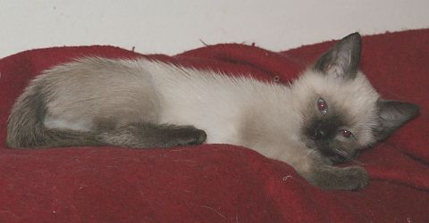 | Am 16. Mai 2012 haben wir Thommy zu uns geholt. Der kleine Kerl hat sich sofort an uns geschmiegt. Thommy war ein echter Thai-Kater. Er war total verschmust zu uns und allen anderen Katzen der Meute. Natürlich hatte er auch immer neue Ideen, wenn es um das Erforschen seiner Umgebung ging. Einem Autofahrer war es offensichtlich nicht mal wichtig anzuhalten, nachdem er unseren liebenswerten Thommy überfahren hat. Erst Nachbarn klingelten bei uns und brachten die traurige Nachricht. Unser kleiner Thommy schläft seit dem 18. September 2013 bei der Regenbogenbrücke. |