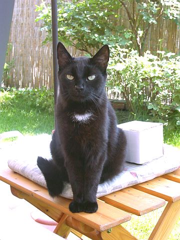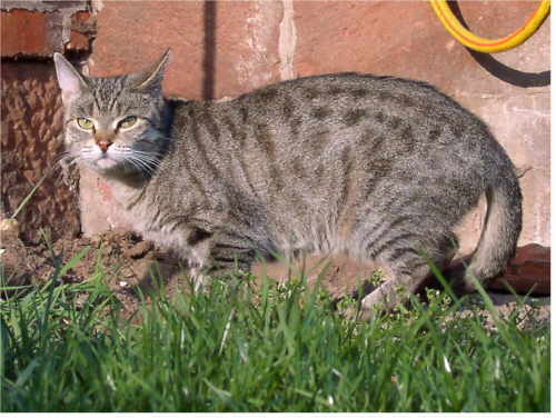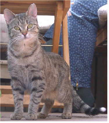 | Das war Fritzi. Selbständigkeit und Ruhe waren seine typischen Eigenschaften. Spielerische Albernheiten kamen vor, gehörten aber nicht zu Fritzis Leidenschaften. Die Jagd auf alles, was piepst und schnell läuft sowie stets gefüllte Fressnäpfe waren schon eher nach seinem Geschmack. In der "Meute" war Fritzi der Einzelgänger, der ob seiner Stärke vor niemandem Angst hatte (außer manchmal vor seinem ärgsten Kontrahenten Benno). Schmusen war nur manchmal angesagt, denn trotz nötiger Zuwendungen war er schließlich ganz und gar kein Schoßkätzchen; auch Kampfspuren und Narben zeugten davon. Nachdem er doch tatsächlich im Februar 2003 eine Ratte uns lautstark als Beute präsentierte trug er den Beinamen "Rattenfänger". Fritzi litt an einem schweren Nierenleiden und hat am 26. September 2005 seinen Weg zur Regenbogenbrücke eingeschlagen |