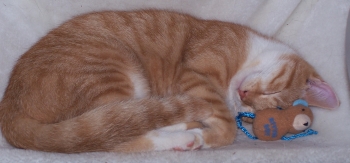 | Seit dem 14.05.2013 lebte Garfield bei uns. Wir haben ihn als Notfall übernommen, da seine Besitzerin ihn unbedingt los werden wollte. Garfield war sehr anhänglich und verschmust. Wir hatten von Anfang an keine Probleme mit ihm. Allerdings war er keine anderen Katzen gewöhnt. Das war sehr problematisch. Er hatte schlichtweg Angst vor der großen Meute und die „Flucht nach vorn“ angetreten. Die vermeintlichen Widersacher wurden lautstark in die Flucht geschlagen. Zu echten Tätlichkeiten kam es dabei allerdings nicht. Mit Lucky hatte er sich nie echt befreundet. Rote Kater sind nämlich gefährlich! Zwischenzeitlich rächte sich seine „Wichtigtuerei“, sodass ihn die anderen anfauchten und niemand sein Freund oder Freundin sein wollte. Die Zeit hat es gerichtet. So wurde er Bestandteil unserer Katzenmeute. Garfield war ein sehr ruhiger Kater, der nur beim Betteln um Leckereien und um Streicheleinheiten sich in den Vordergrund stellte. Er gab manchmal lustige Laute von sich, die wie „Mack mack“ klangen. Garfield war offensichtlich schwer Herzkrank. Nach allen erdenklichen Rettungsversuchen durch die Tierärztin ist er am 23.02.2015 ganz plötzlich zur Regenbogenbrücke gezogen. |