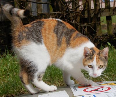 | Das war Kitty, die wir am 7. April 2003 aus dem Tierheim in Frankenberg geholt haben. Es hieß damals, dass sie 3 oder 4 Jahre alt sei. Sie hatte sich unglaublich schnell und völlig problemlos sofort hier zu Hause gefühlt. Die sonst immer üblichen Streitereien und Drohgebärden der anderen Katzen bei "Neuzugang" blieben bei Kitty absolut aus. Sie verließ selbständig das Haus und kehrte ebenso selbstbewusst zurück. Draußen balgte sie am liebsten mit Luzie herum. Die kleine getigerte Katze war sehr verschmust, hört auf ihren Namen (wenn sie Lust hatte!) und ließ sich am liebsten auf dem Rücken liegend den inzwischen recht pummeligen Bauch kraulen. Für Kitty gab es im Leben nur schöne Momente. Sie konnte mit absolut jeder Situation zufrieden sein und sich in jeder Lebenslage wohl fühlen. Nur auf den Arm nehmen und tragen ließ sie sich nicht besonders gern. Geschah im oder ums Haus herum irgend eine handwerkliche Aktivität, war Kitty - von unglaublicher Neugier getrieben - sofort zur Stelle und blieb an diesem Ort bis zur Erledigung der Arbeiten. Das brachte ihr den Spitznamen "Heimwerkerkatze" bei uns ein. Kitty wurde in den letzten Monaten sehr ruhig und von Fred als Ersatzmama adoptiert. Sie lagen beide nachts zusammengekuschelt und man hörte oft Fred an ihrem Fell nuckeln. Sie wurde immer dünner und schwächer und am Sonntag, 16.02.2014 hat sie auf schon sehr wackligen Beinen das Haus verlassen und und ist zur Regenbogenbrücke gegangen. Unser Nachbar hat sie gefunden und wir konnten sie am 27.02.14 beerdigen. |