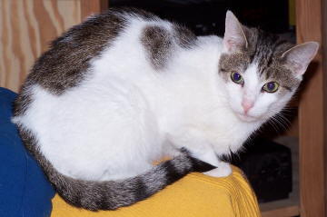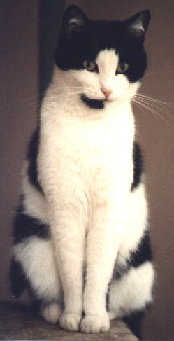 Das war Momo. Unser "Oldie" wurde immerhin stolze 19 Jahre alt. Momo schläft nun seit 1.Juni 1999 am Fuße der Regenbogenbrücke. Er verstand es brillant, in der letzten Zeit seine Position als Nestor gegenüber sowohl uns als auch gegenüber seinen "KollegInnen" auszunutzen und genoss somit rundherum 'ne Menge Sonderrechte. Momo war sehr liebesbedürftig, schnell eifersüchtig und bettelte stets um Leckerbissen. (und er bekam sie auch - manchmal mit ( wenn man Menschengesetze zugrunde legt ) nicht ganz legalen Mitteln!!!. Für Spielereien und zwangloses Herumtoben waren in unserem Hause andere als Momo verantwortlich. Na gut: dafür war er eben auch Rentner und wünschte als solcher behandelt zu werden! |