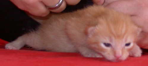 | Eine halbe Stunde nach Luzie wurde Rossini am 10. Juli 2002 in unserem Schlafzimmer geboren. Er war genauso knuddelig und niedlich, wie auf dem Bild ersichtlich. Falsch! Er war noch viel niedlicher und friedfertiger als es ein Foto ausdrücken könnte!!. Der kleine Kater war wesentlich ruhiger als seine Schwester. Rossini verstand sich mit absolut allen aus der Meute prächtig. Er war trotz großer Verspieltheit sehr sehr anhänglich und verschmust. Das hastige Entleeren voller Futternäpfe und regelmäßige alberne Balgereien mit seiner Schwester oder manchmal auch mit Benno gehörten zu seinen Lieblingsbeschäftigungen. Seit dem 7. April 2003 ist er nicht mehr nach Hause gekommen. Eine unübersehbar große Unfallstelle auf der Straße in der Nähe unseres Hauses lässt bei uns keinen Zweifel mehr, dass unser geliebter Rossini zum Fuße der Regenbogenbrücke gezogen ist. |