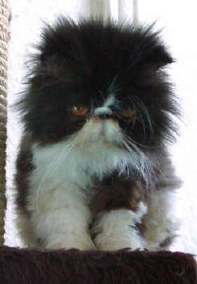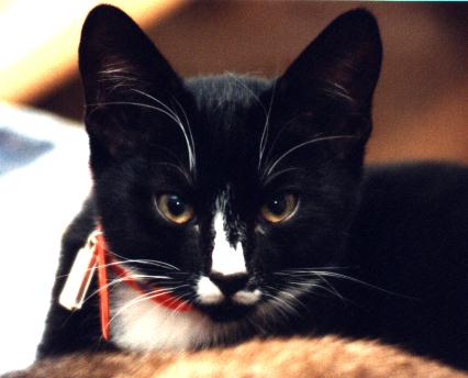 Das war Momo. Unser "Oldie" wurde immerhin stolze 19 Jahre alt. Momo schläft nun seit 1.Juni 1999 am Fuße der Regenbogenbrücke. Er verstand es brillant, in der letzten Zeit seine Position als Nestor gegenüber sowohl uns als auch gegenüber seinen "KollegInnen" auszunutzen und genoss somit rundherum 'ne Menge Sonderrechte. Momo war sehr liebesbedürftig, schnell eifersüchtig und bettelte stets um Leckerbissen. (und er bekam sie auch - manchmal mit ( wenn man Menschengesetze zugrunde legt ) nicht ganz legalen Mitteln!!!. Für Spielereien und zwangloses Herumtoben waren in unserem Hause andere als Momo verantwortlich. Na gut: dafür war er eben auch Rentner und wünschte als solcher behandelt zu werden! |