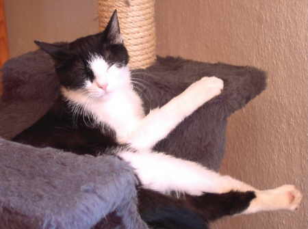 | Das war Muck. Er war ungemein furchtlos und tapfer und mutig, wenn kein anderer Kater in der Nähe ist. Obwohl er es rein physisch sicher mit jedem anderen in und ums Haus aufnehmen konnte, steckte ein Angsthase in Muck. Sehr gern lag er unter irgend einer Decke und macht sich unsichtbar. Meist hielt er sich tagsüber im Garten auf . Sehr häufig war er in "Katerwärmgruppen" mit Samson und Sunday zu finden. Neues, ihm Unbekanntes flößte ihm schnell panikartige Angst ein. Muck brauchte sehr viel Zuwendung und Nähe, was aber auf Grund seines imposanten Gewichts oft problematisch war. Am 28. Oktober 2008 ist er für immer eingeschlafen und ist zum Fuße der Regenbogenbrücke gezogen. |